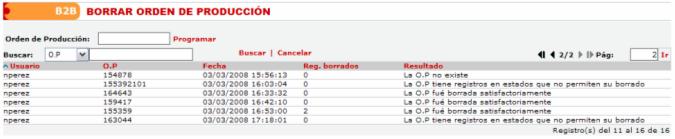 El proceso de borrado de la orden de producción es ejecutado por