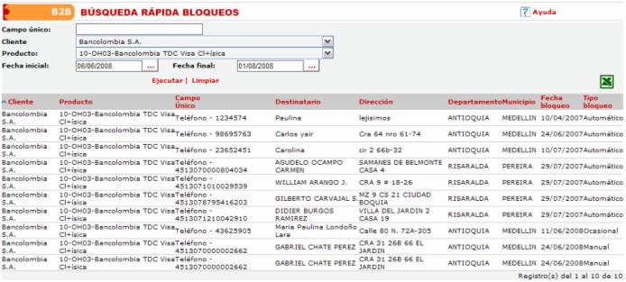 seleccionar el cliente al cual pertenece el bloqueo que desea consultar.