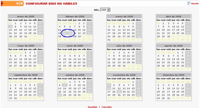 S.A., definir los días no hábiles de su calendario anual