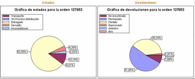 torta, donde se visualizan los Estados de entrega y las Devoluciones de