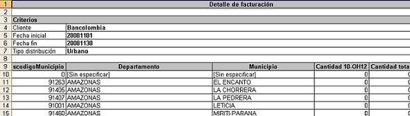 de facturación al cliente para cada uno de los municipios.