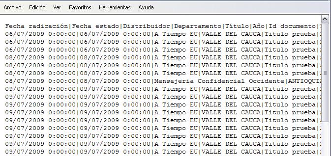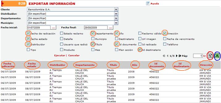 hoja de cálculo, con los datos seleccionados para la consulta.