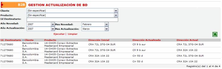 la dirección que ingresada como actualización en la base