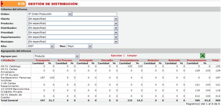 un informe del proceso de distribución actual de los productos.