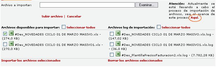 a importar, seleccionarlo y dar clic sobre Borrar los archivos seleccionados.