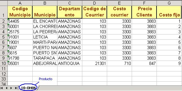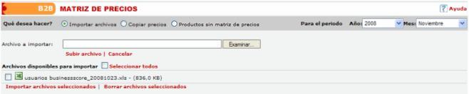La matriz de precios se sube en un archivo de excel, cuya estructura es