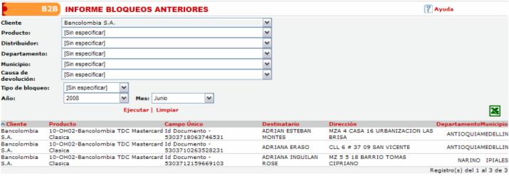 una consulta que muestra los destinatarios que estuvieron bloqueados en