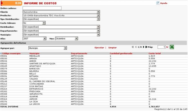 un informe de los costos de distribución de acuerdo a la