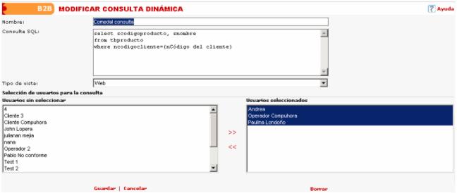visualizar la consulta dinámica, seleccionarlo del recuadro Usuarios seleccionados, y luego dar