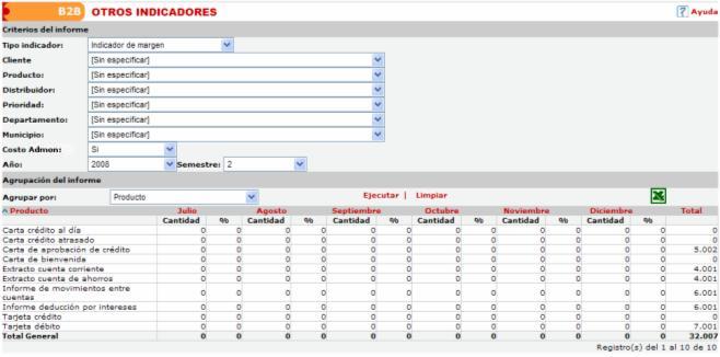 diferentes informes de acuerdo a el tipo de indicador seleccionado para