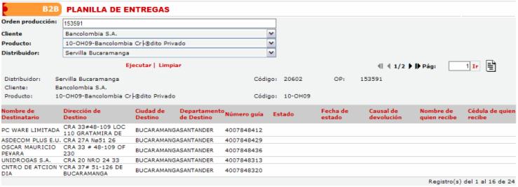 El icono , permite la exportación de los registros buscados, a una tabla en el procesador de texto Word, para su impresión, con el fin de completar los datos de acuerdo vayan realizándose las entregas por parte del distribuidor.